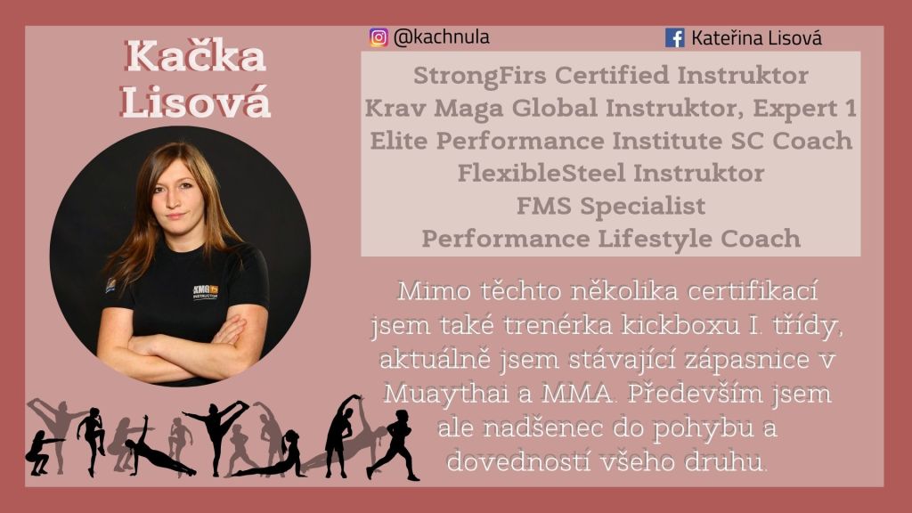 Můžete se těšit na individuální přístup, učení se správných technik a různých pokročilostí cviků tak, aby jsme všechny věděly, jak cvik provést správně a jakou obtížnost cviku zvolit, spoustu teoretických znalostí, které si následně všichni vyzkouší v praxi. Mimo cvičení mobility a protahování nás čeká posilování s náčiním i bez, kruhový trénink, silové nebo kondiční tréninky, běžecká technika přizpůsobená jak pro běžce, tak i pro neběžce, nebo například praktická přednáška o sebeobraně. Večer si u dobrého pití rozebereme nějaká důležitá témata, počínaje výživou a zdravými návyky přes neurotypy až po regeneraci.