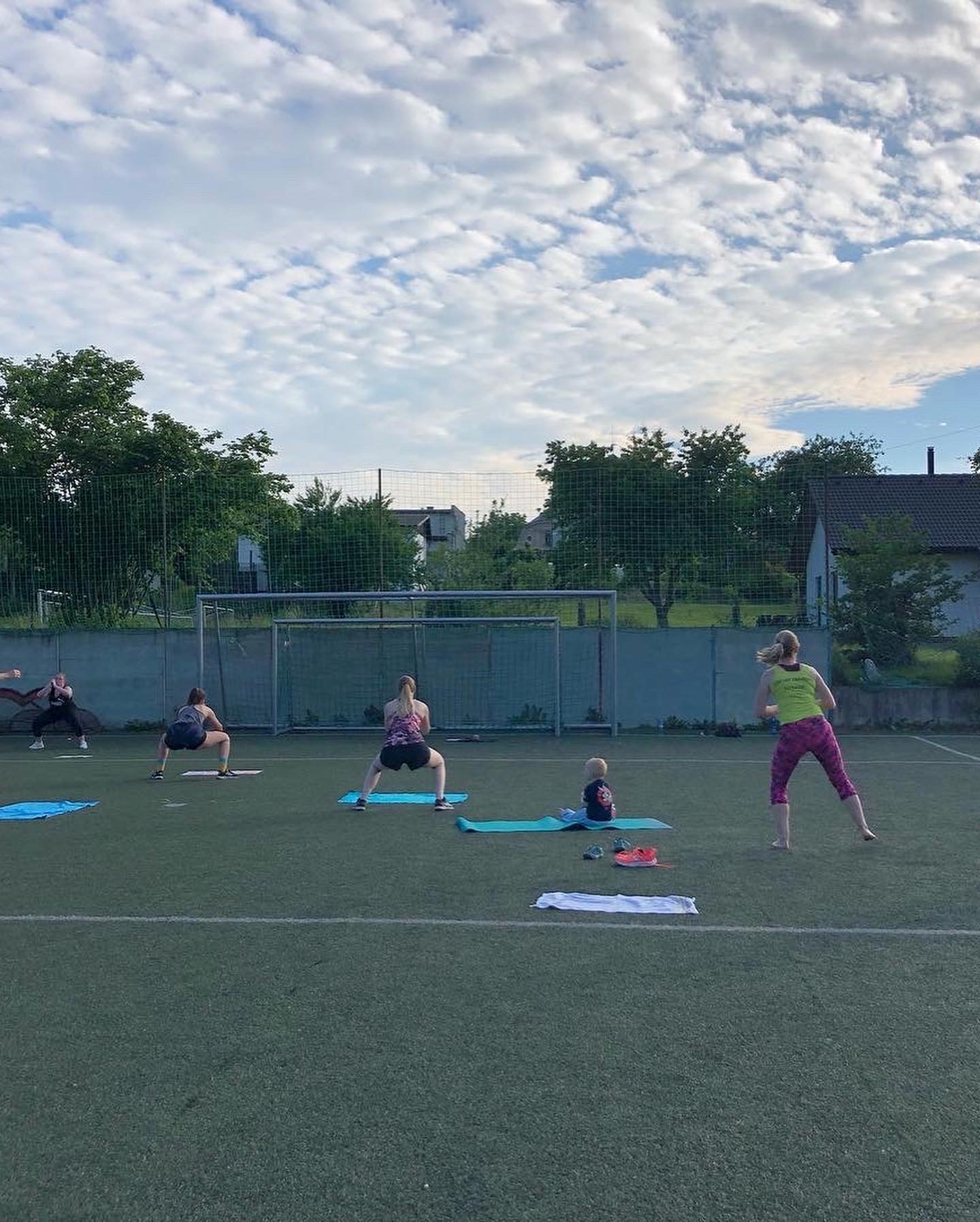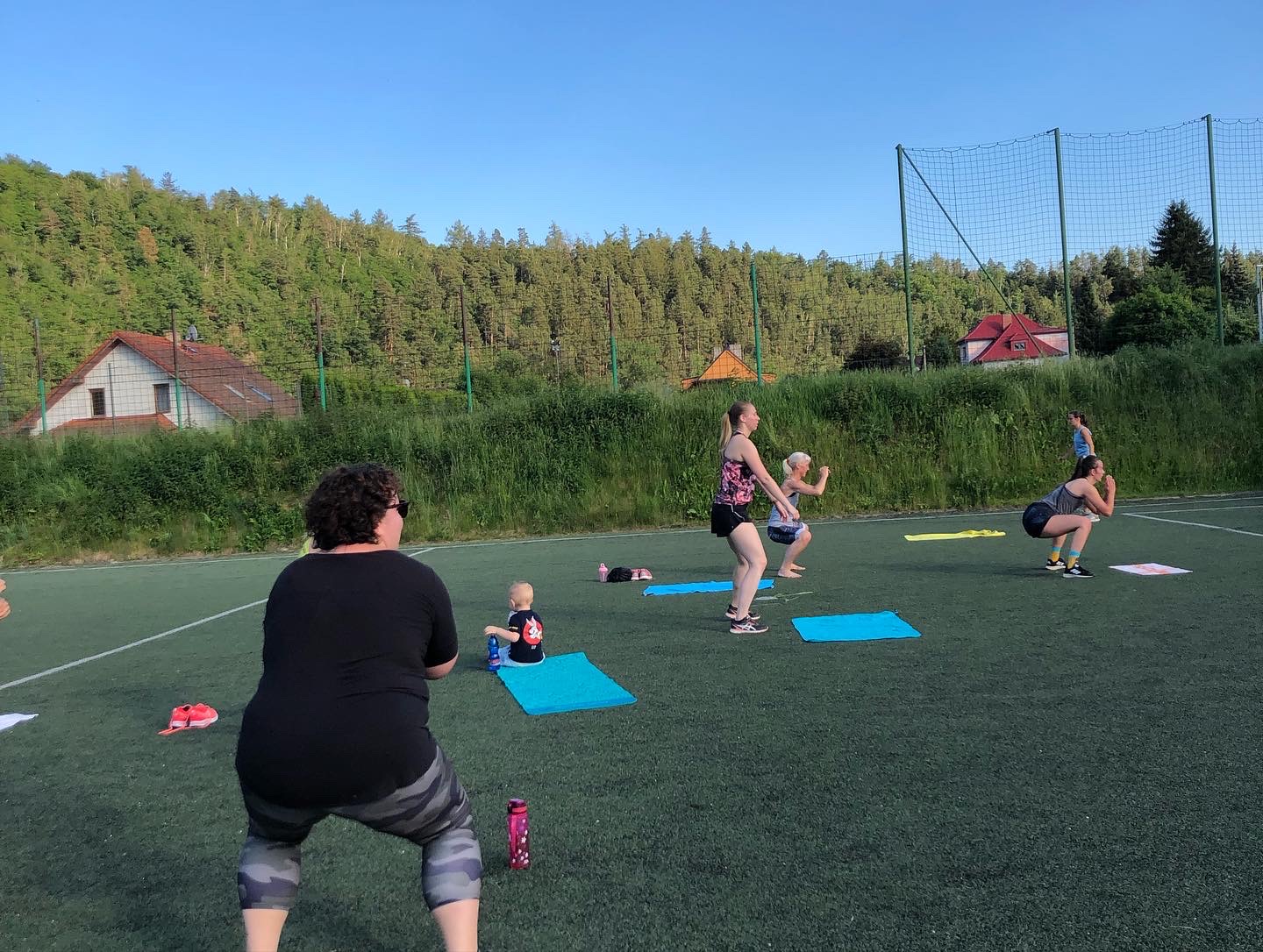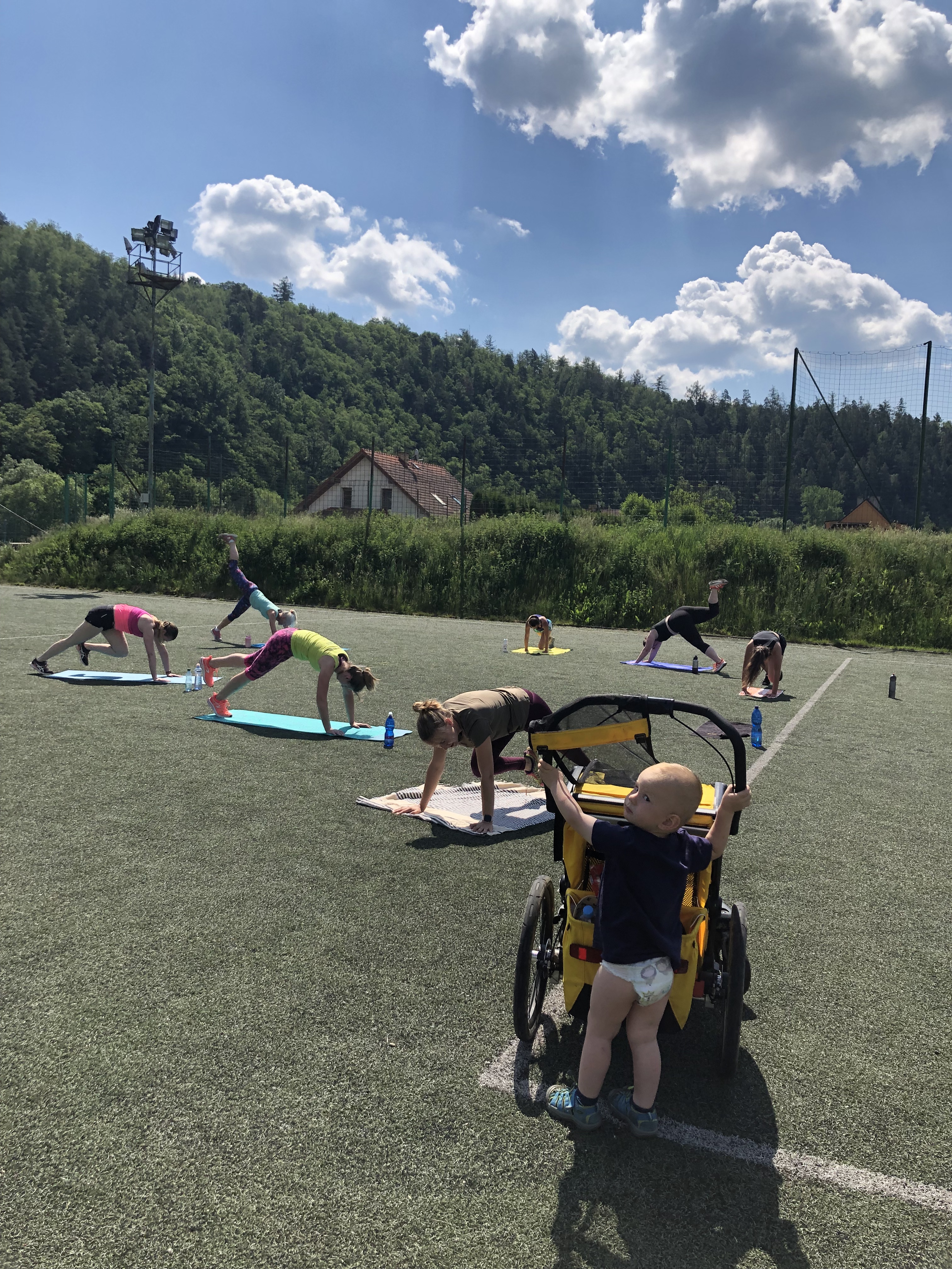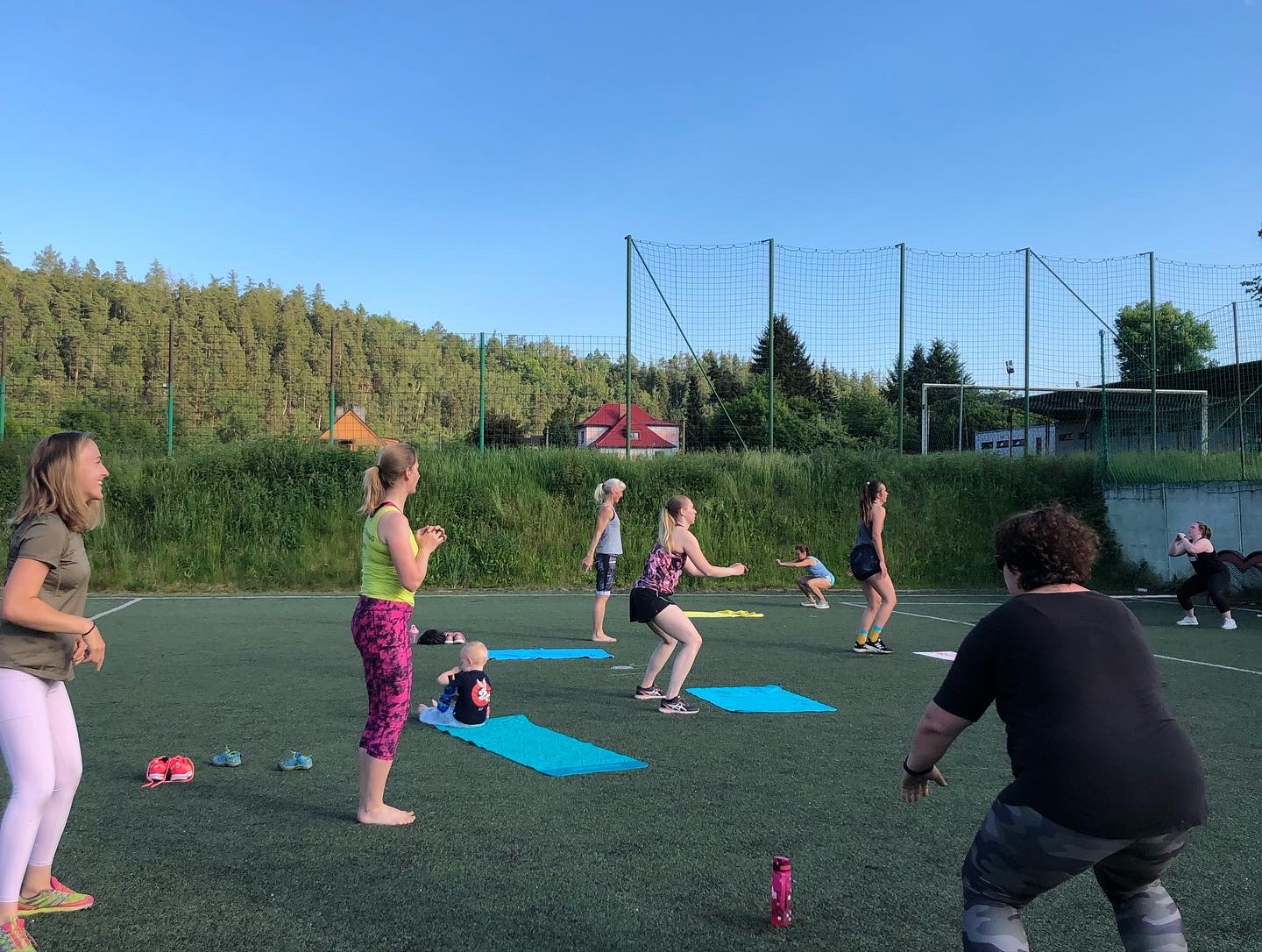 Užily jsme si spoustu tréninků, za celý víkend jsme odcvičily celkem 5 tréninkových jednotek, těžší, lehčí, kratší, delší. Zahájily jsme soustředění večerní lekcí, kdy jsme si zkusily HIIT a LISS cardio na cca 60ti minutové lekci. Každé ráno před snídaní jsme zahajovaly srazem na fotbalovém hřišti, kde jsme si užívaly ranní rosy a ještě né tak horkého počasí. Ranní kratší lekce (30-40min) byla pojata formou regenerace, aby ji na lačno každý zvládl, protáhli jsme se a prokrvily bolavé partie, které povětšinou přestaly bolet. Snídaně probíhaly formou rautu, kde si každá zúčastněná nabrala co má ráda, to je obzvlášť příjemná část dne 🙂 . Před obědem jsme se sešly na hlavní tréninkovou jednotku, která byla nejdelší, trvala cca 75minut. Zahřály jsme se běžeckou abecedou, protáhly a společně prošly 40 minutovým workoutem. Před večeří jsme se sešly na předposlední trénink kempu. Vzhledem k přibývající únavě a bolavým nohám, i přes časté rolování svalů a snaze nacpat do programu co nejvíce regenerace, jsem musela holky trochu namotivovat, protože energie bylo méně a méně, tudíž jsme se zahřály lehkých výběhem, udělaly krátký kruháček na dozahřátí a soutěžily jsme o ceny v hodnotě 1600,-. Vítězky nakonec byly dvě. Holky se neuveřitelně hecovaly a ta atmosféra byla parádní! Každý měl možnost jít podle sebe, buď tam nechat vše a nebo se jen kolektivně zúčastnit. Nakonec se všechny holky dostaly ve workoutu opravdu daleko!
