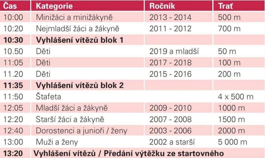 Časový harmonogram dle věkových kategorií: